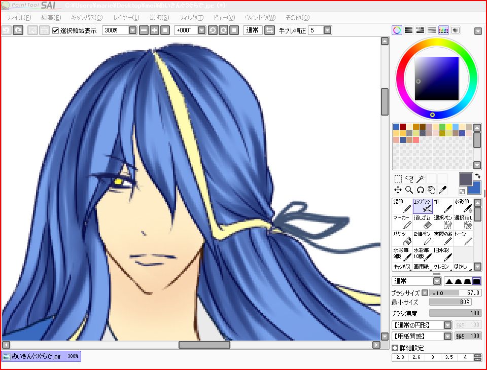 肌は、紫系統でガッシガシと塗っています。気に入らなかったら色彩・彩度フィルターいじくればいいんです。