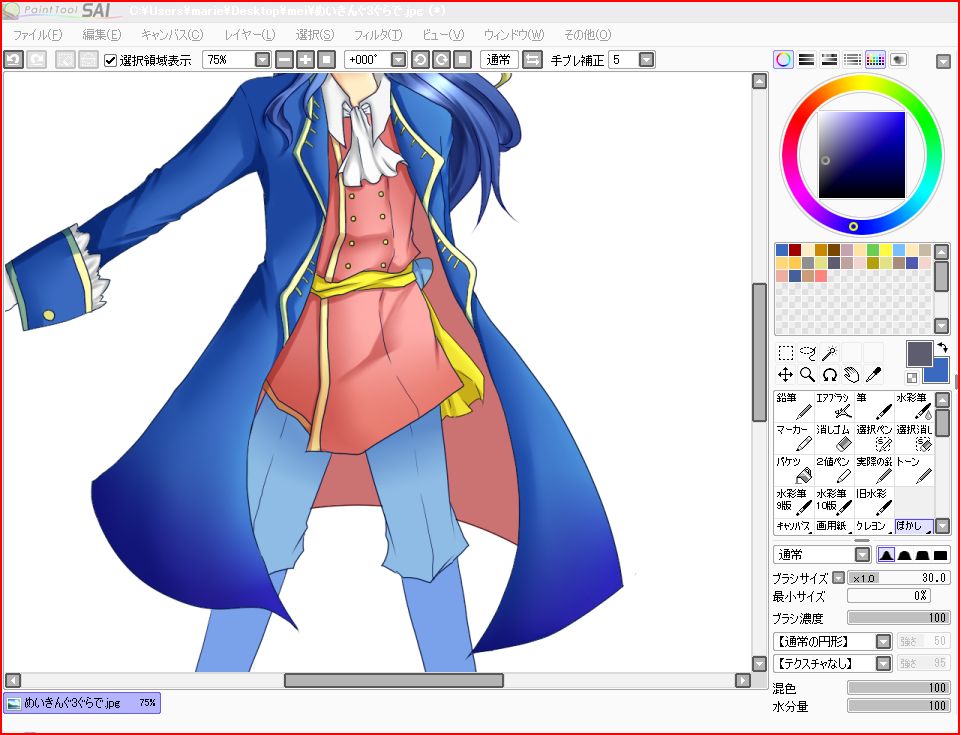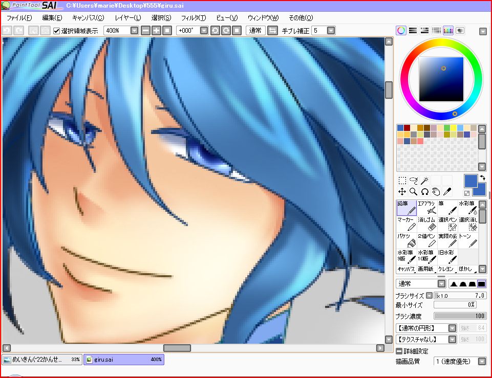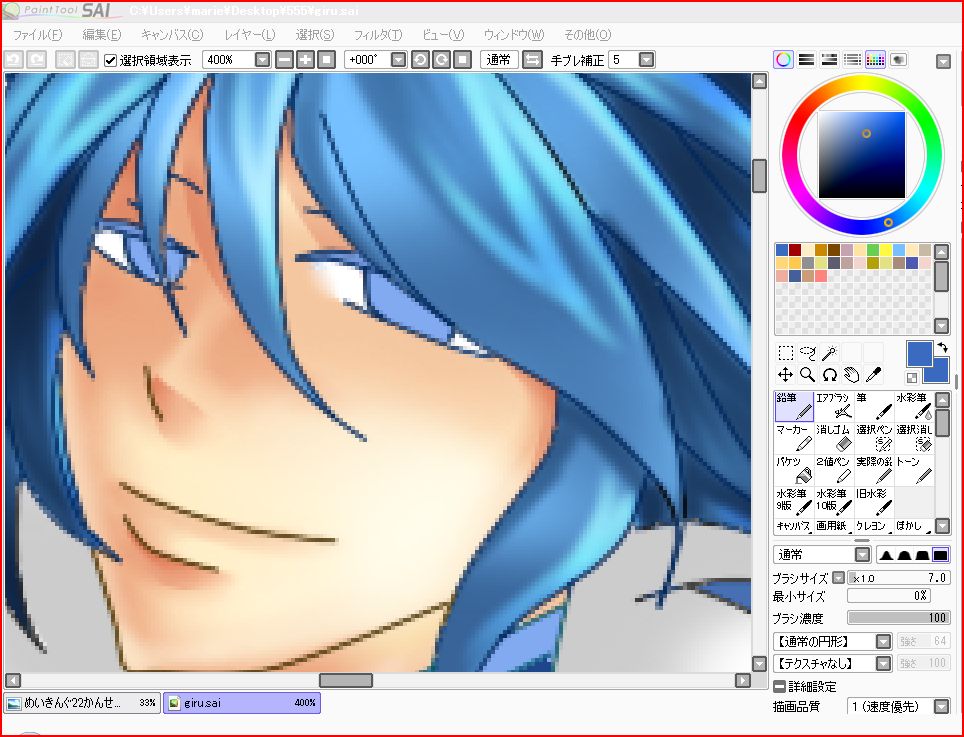 鉱はいつもがっしがっしと変えております。服や髪の毛の色で同じ色を塗っているイメージがあっても影の色が違く見えたり違和感が出たりする時もある(ような気がする)んです。