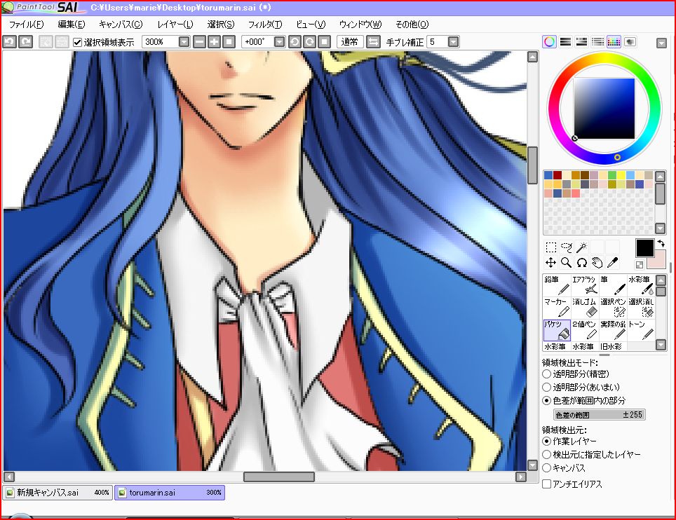 でも範囲選択って微妙に白く残るから、そこは手動で塗り塗りします。
