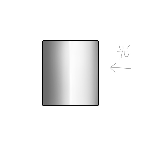 本当は光の反射だとかなんとか色々あるんですが、鉱には全く説明出来ないので、左のみたいにハイライトをがああって入れた後に、ハイライトをちまちま消して右の図みたいにすればいいんじゃないかな!としか言えない。後両端にハイライト入れるという逆もしかり。